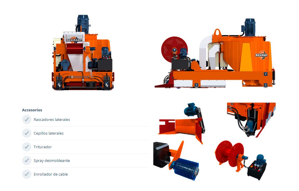 Además de los Equipamientos Auxiliares, para realizar de forma correcta todas las tareas durante el proceso de fabricación, son necesarios diferentes accesorios como las Pinzas de elevación, el Tensador, el Destensador, las Cuñas de anclaje, Enrolladores de cable y de manguera, etc.