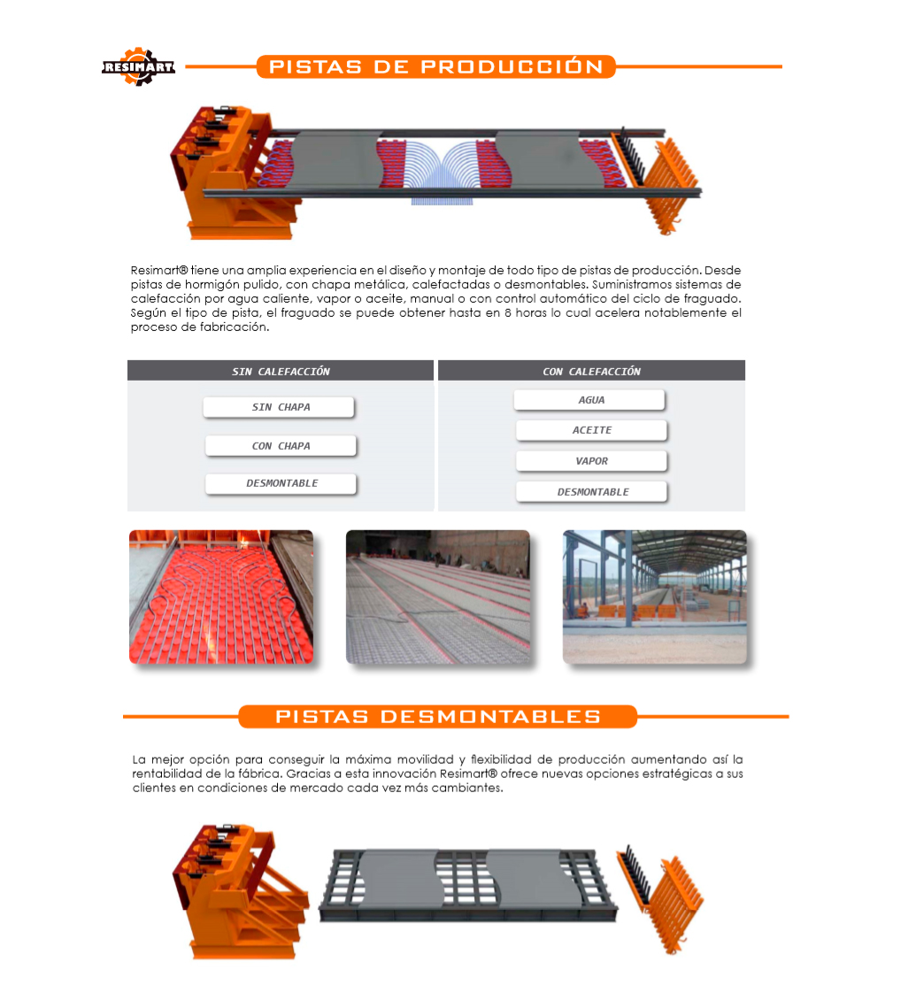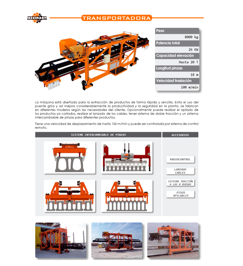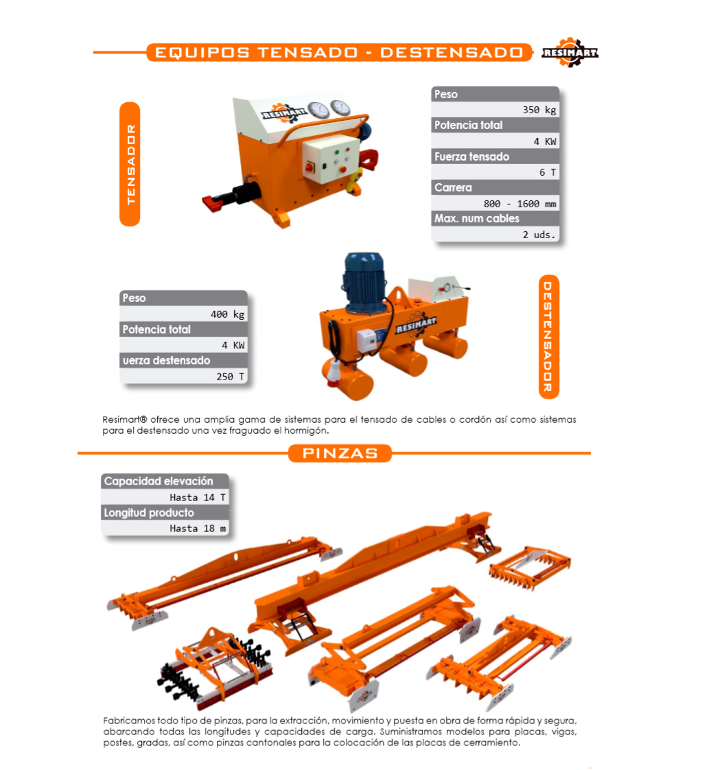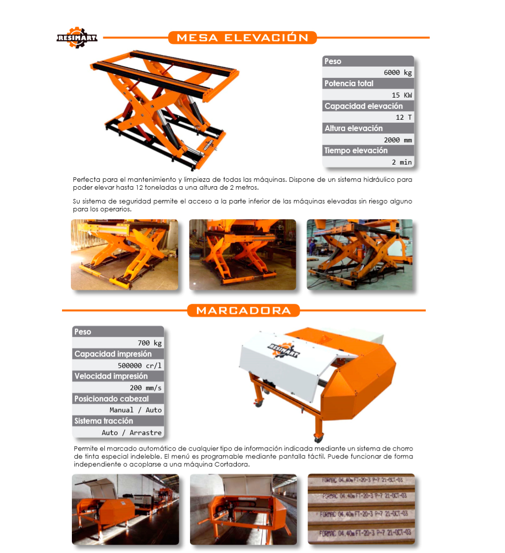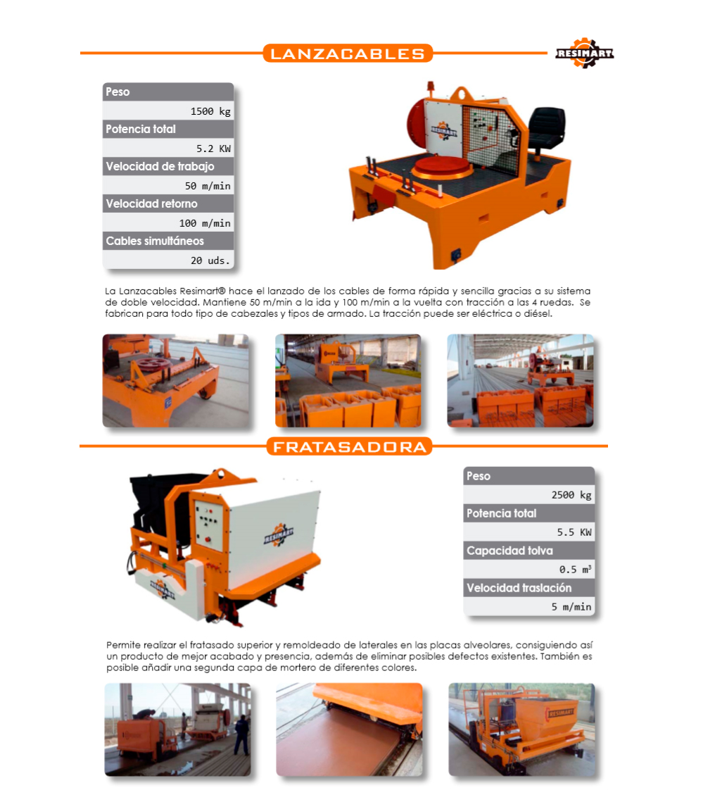 Además de los equipos de producción, RESIMART© ofrece una amplia gama de equipamientos complementarios a utilizar durante el proceso de fabricación. Su avanzada tecnología les ha hecho situarse como uno de los líderes del sector en la fabricación de Cortadoras, Limpiapistas, Lanzacables, Transportadoras, Fratasadoras, etc.,