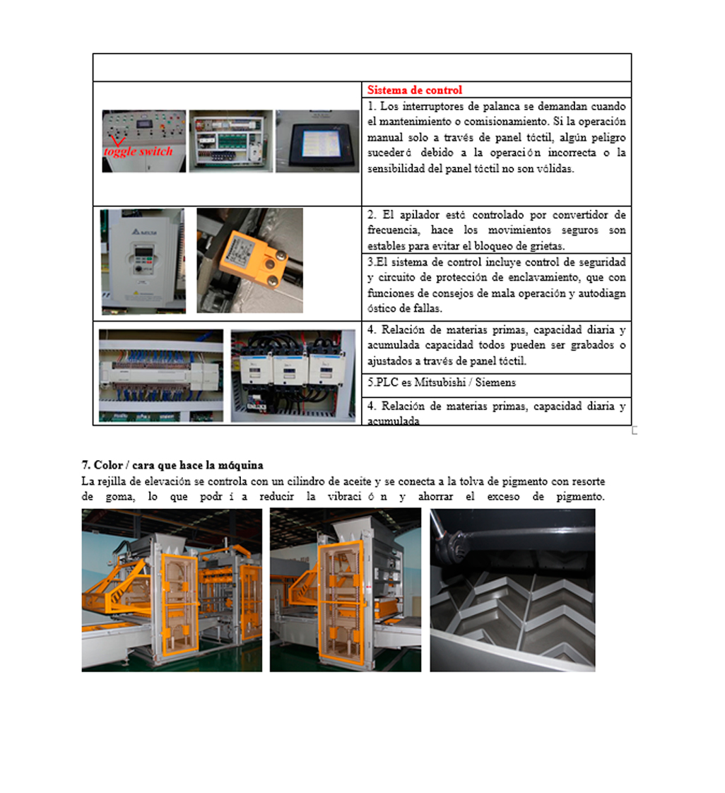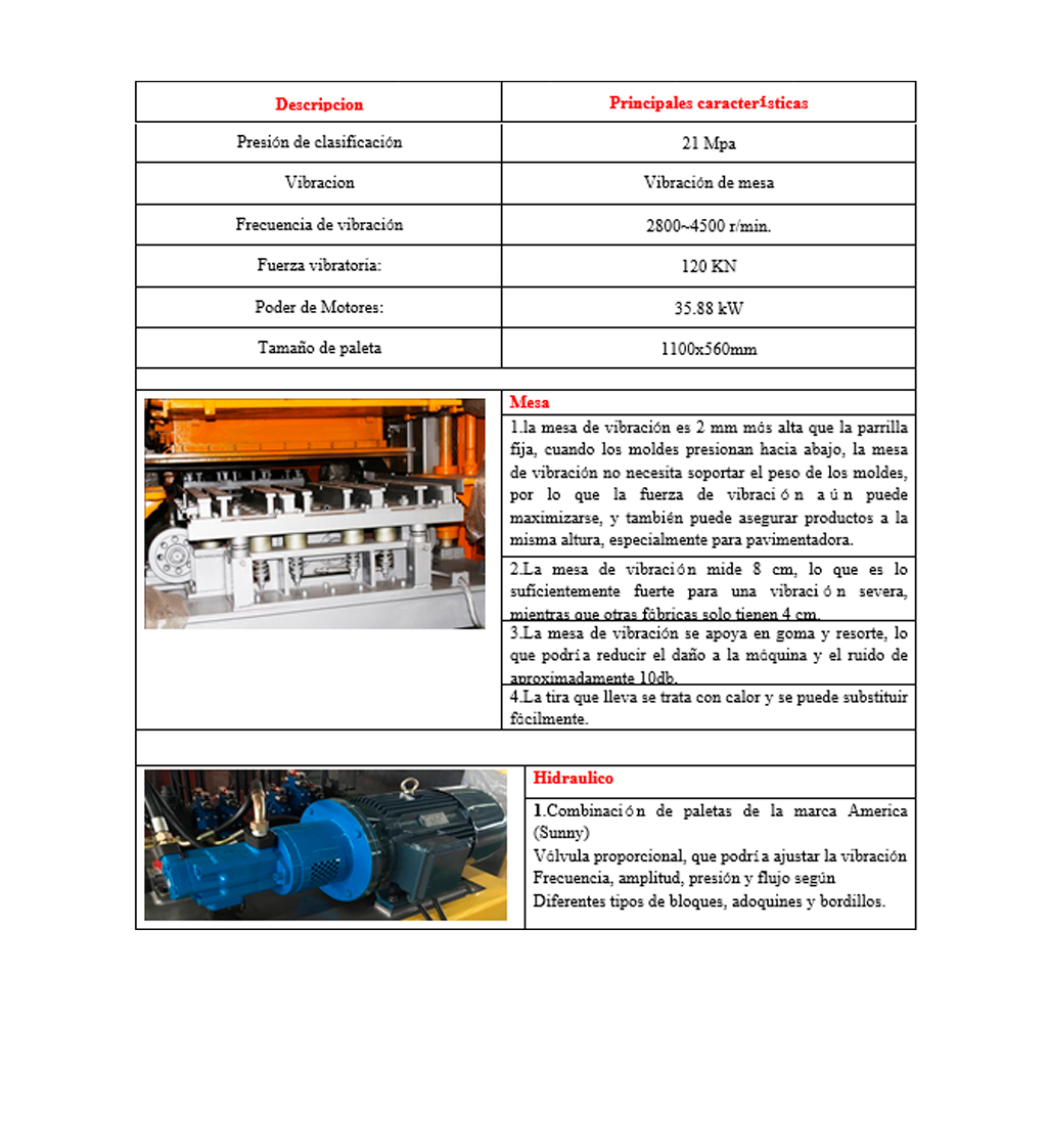 3) Óptima estructura de ejes vibratorios ,que asegura la vibración distribuida uniformemente en el rango de vibración de la mesa, mejora la uniformidad y estabilidad de los bloques, produce mejor calidad de producto que antes al usar la misma proporción de materia prima, y reduce efectivamente el ruido.